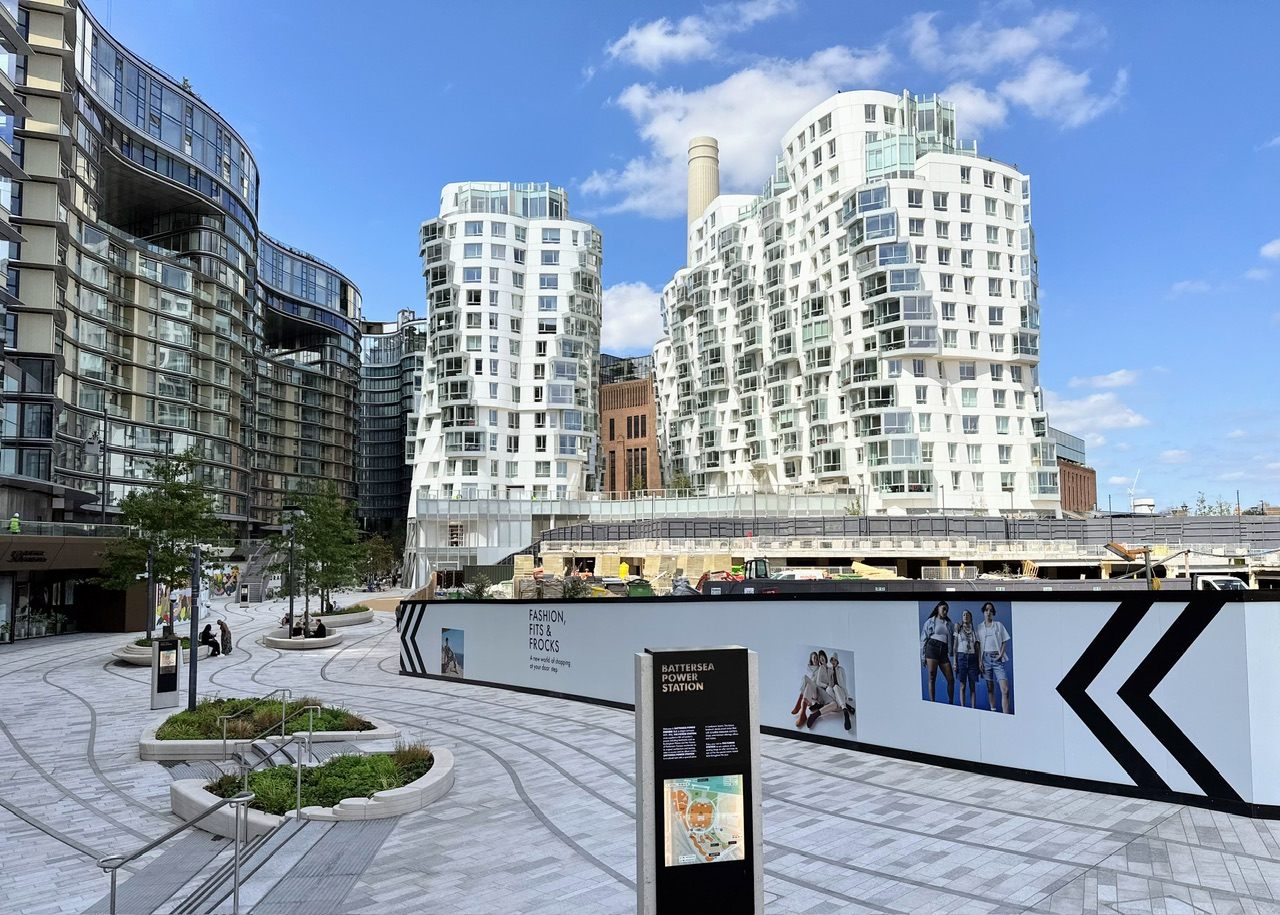 2021年の9月に地下鉄ノーザン・ラインのバタシー・パワー・ステーション駅が開通して以来、元発電所が去年10月に再開発されてオープンするなど、なにかと話題になっているロンドン南西部の商業施設エリア。