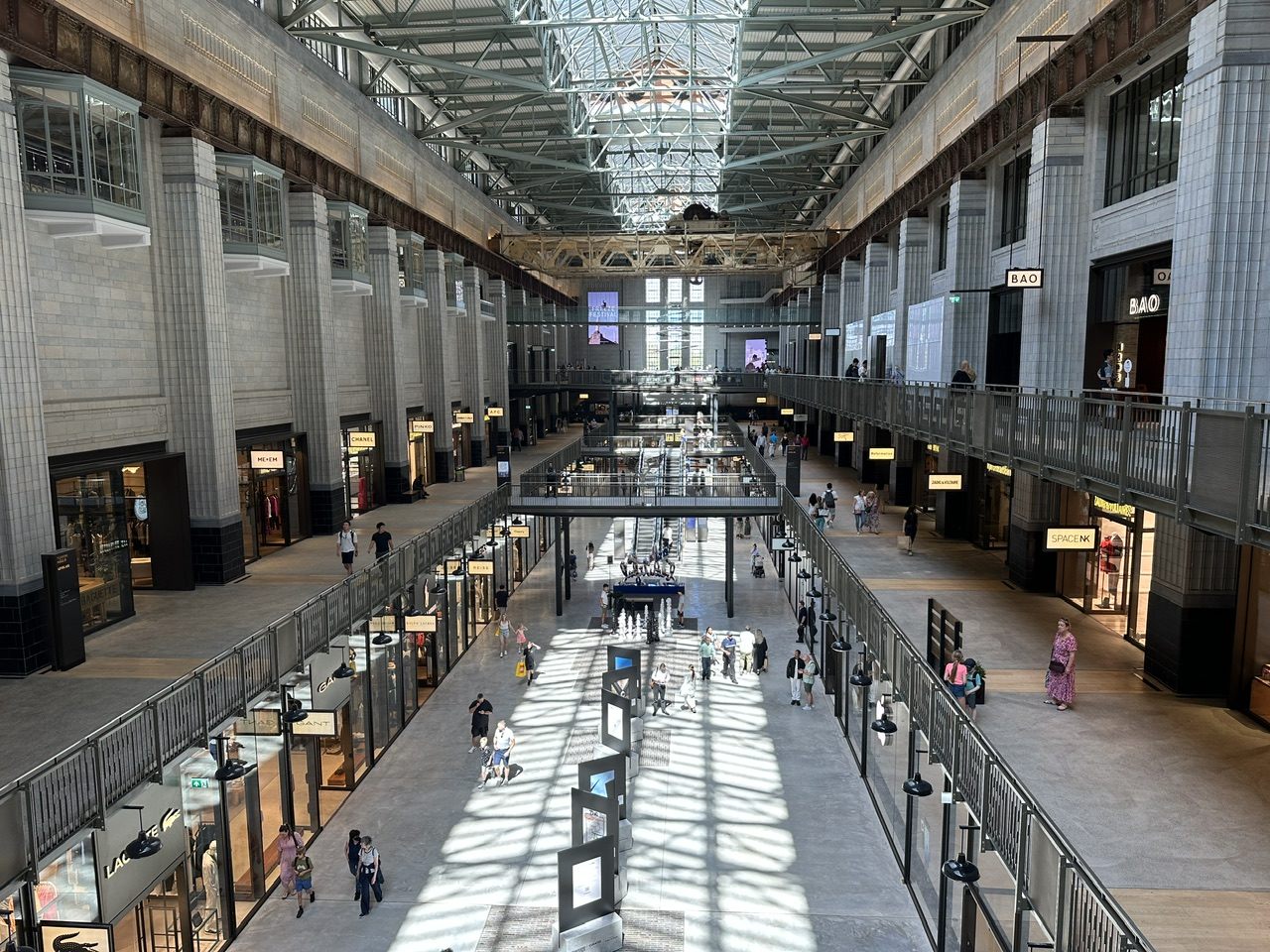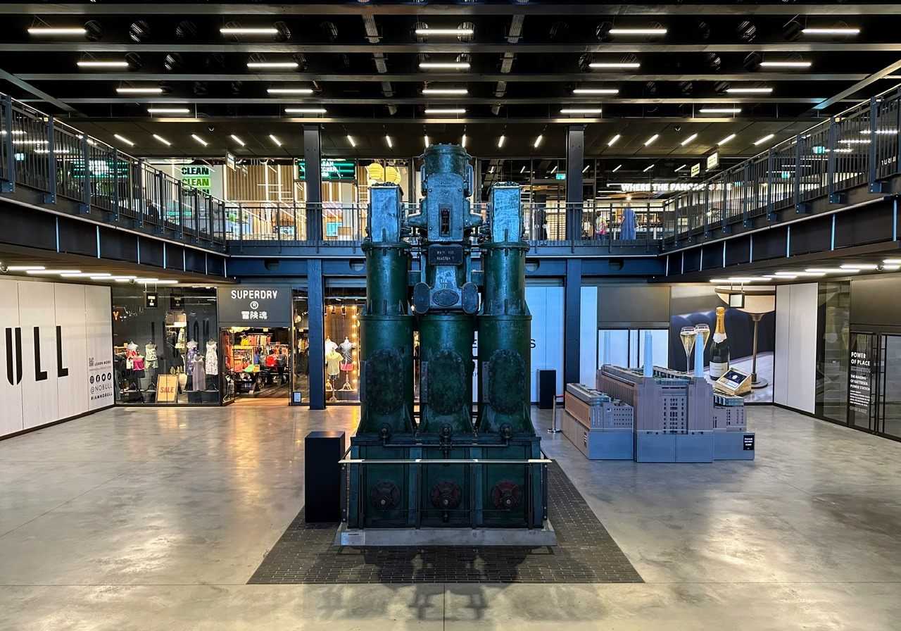 発電所ビル内に足を踏み入れてみると、高級ブティックやユニクロ、カフェ・レストランなど多数のショップが並んでいました。