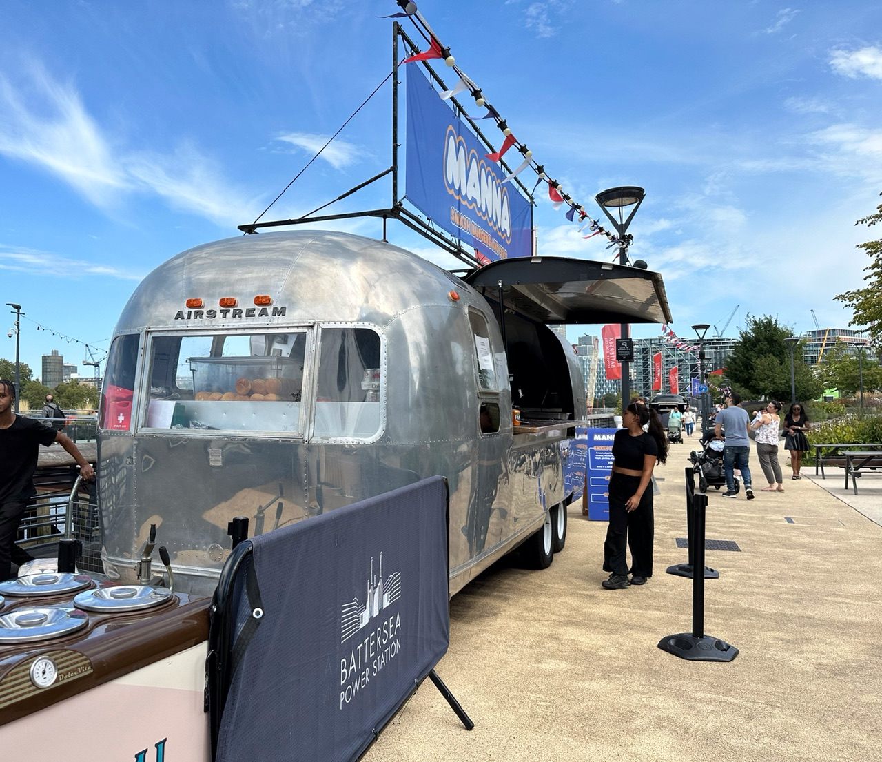 会場にはキッチンカーも出ており、手軽に食べられるバーガーやドリンクを持って、川沿いのテラスに座り、テムズ川の風に吹かれながら食べるのも気持ちよいでしょう。