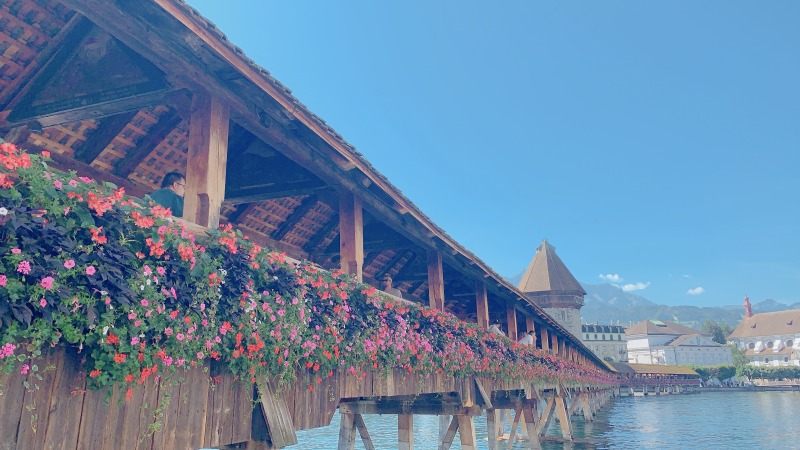 ランドマークは長さ約200mのヨーロッパで最も古い木造屋根付きの橋、カペル橋です。