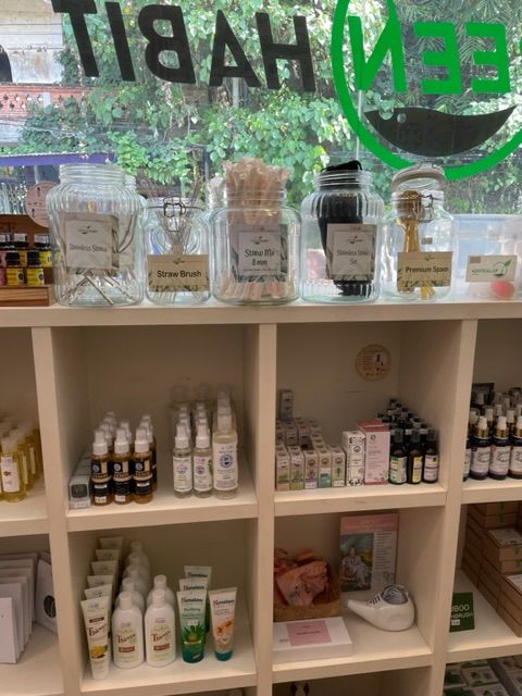 扱っている商品は、蜂蜜、植物性シロップ、サプリメント、歯磨き歯ブラシ等の雑貨小物、アロマオイル、虫除けスプレー、ソープ、ヴィーガンスナック、チョコレート、カカオニブ、ジャム、ピーナッツバター、ココナッツバター、カシューバター、ハーブパウダー、ティー(色々)、コーヒー、グルテンフリー&ヴィーガンパンケーキやブレッド用の粉類、ナッツ、ドライフルーツ、チップス、冷蔵庫には発酵食品(ヨーグルト、チーズ、味噌、ジャムー(ウコンベースのバリの生薬ハーバルドリンク)、パワーバー系スィーツ、エナジーボール、ココナッツウォーター、ヴィーガン用植物性ミルク類などなど。