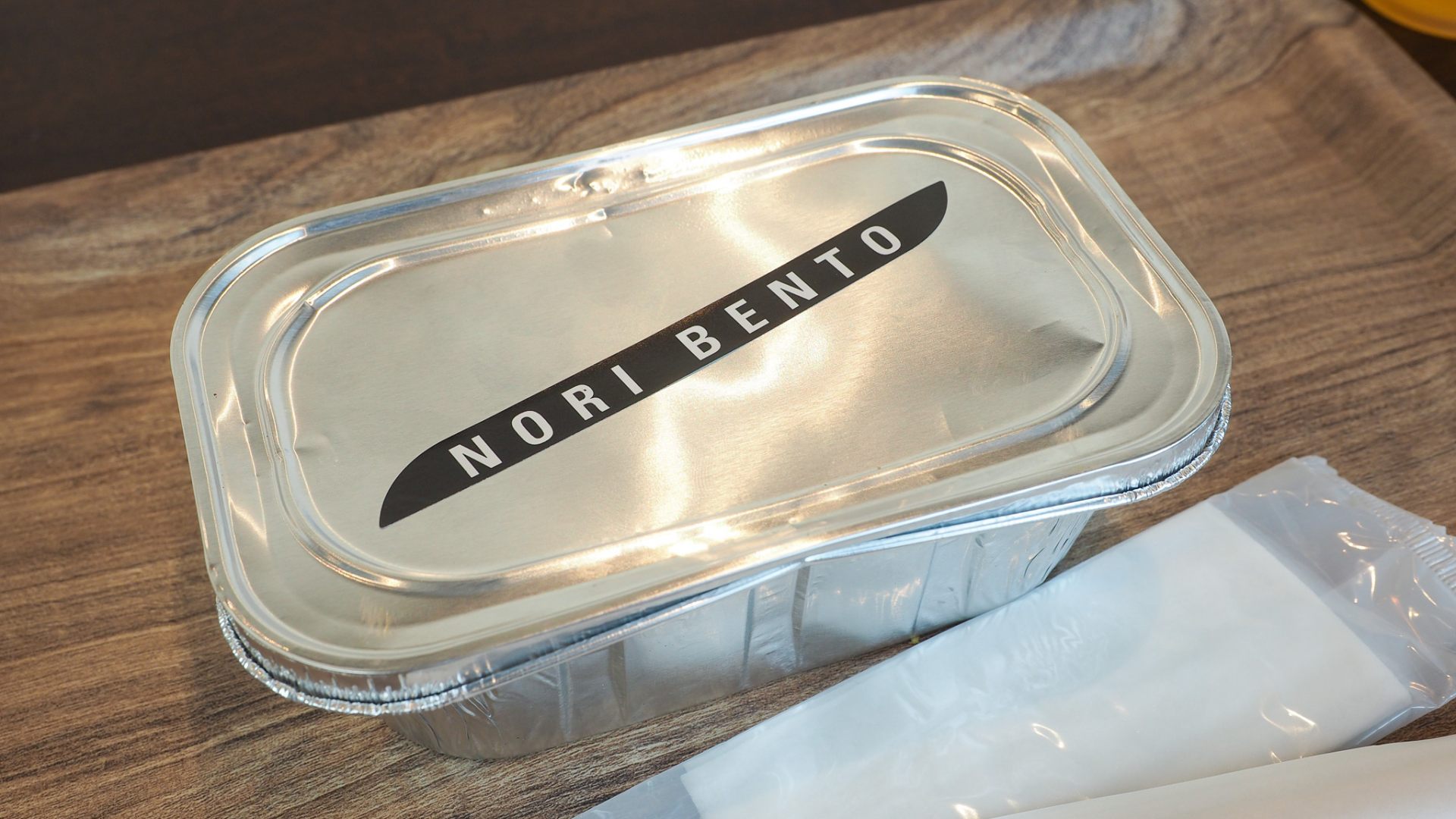 見出しにも書きましたが、一見、とてもスタイリッシュで洋風にも見えるこちらのボックスの中身は、なんと「NORI BENTO」(650円)。