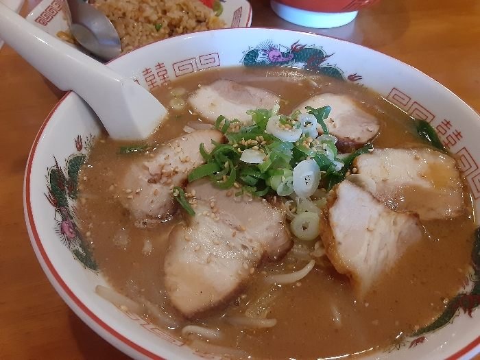 「お待たせしました♪」目の前に置かれたチャーシュー麺のボリュームたるやッ!! 手打ちのモチモチ麺に味噌の味わいがからまってすするほどに口のなかい~っぱいに広がるおいしさたるやッ!! ん~、トロうまのチャーシューの味わいも好みでお腹いっぱいになりました。