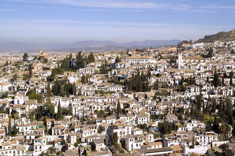 ちなみに、アルハンブラ宮殿から見るアルバイシン地区はこんな感じです。