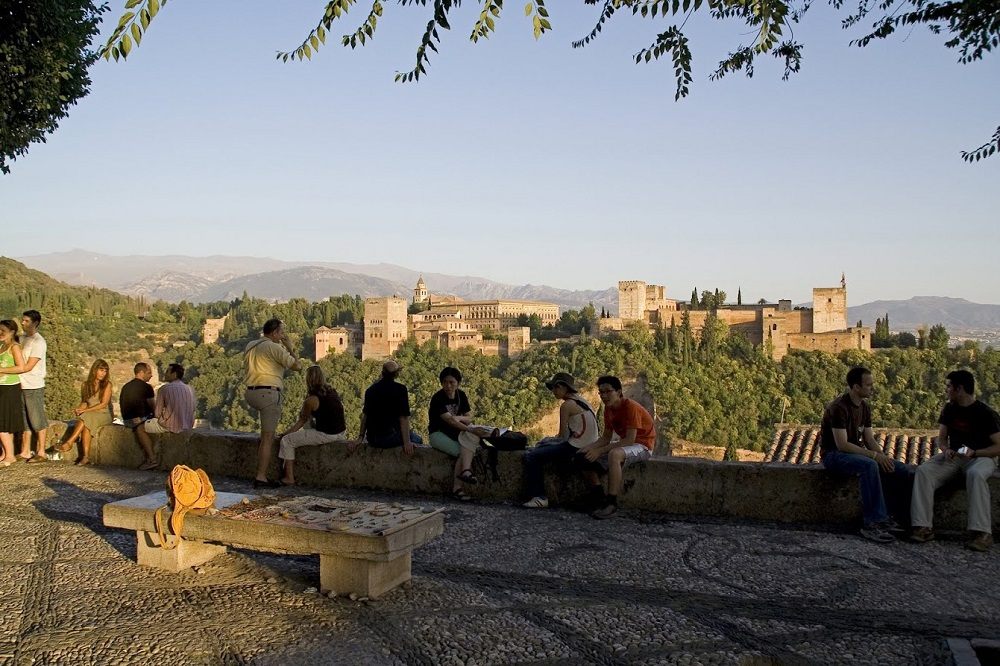 私もグラナダに行ったら必ずこの展望台に行き、アルハンブラ宮殿を眺めます。日中、空が赤く染まる夕暮れ時、ライトアップされる夜とどの時間帯をとってもため息が出るほどの美しさです。アルバイシン地区の散策が好きな私はいつも歩いて行きますが、ヌエバ広場(Plaza Nueva)から小型の市バス31番か32番で行くこともできます。夜間に行くなら、治安を考えてバスかタクシーがおススメです。