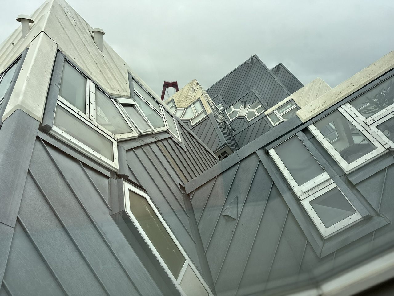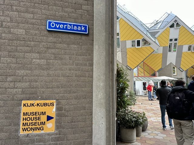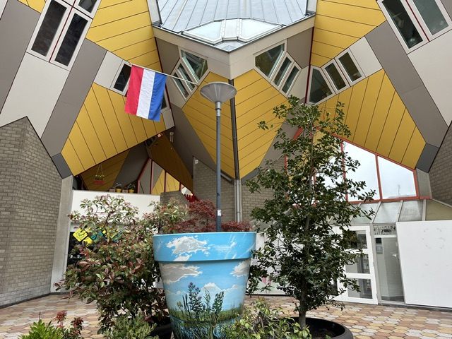 よく見ると、隣に立つマンションらしき建物も十分個性的で、一帯はアートな雰囲気に包まれています。実際80年代までは、キューブ・ハウスに囲まれた4つの遊歩道、通称「オーバー・ブラーク(Overblaak)」でファッションイベントなど、文化的なイベントが定期的に開催されていたそうです。