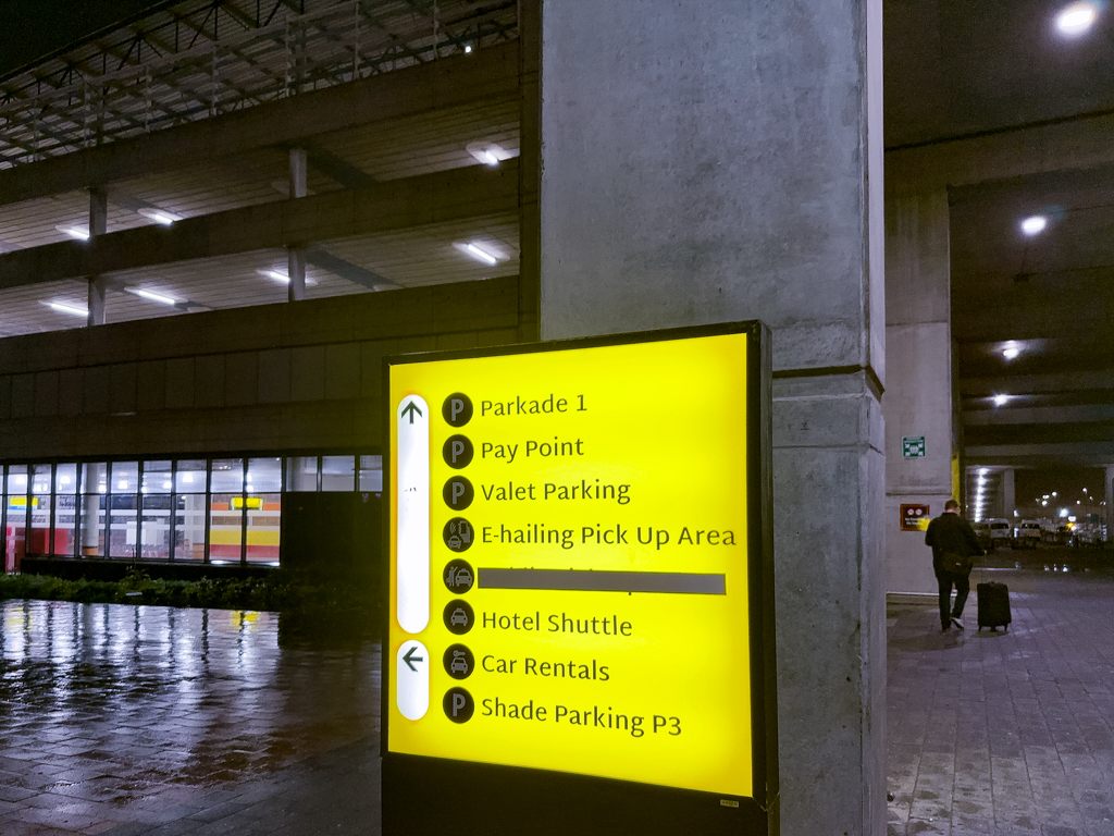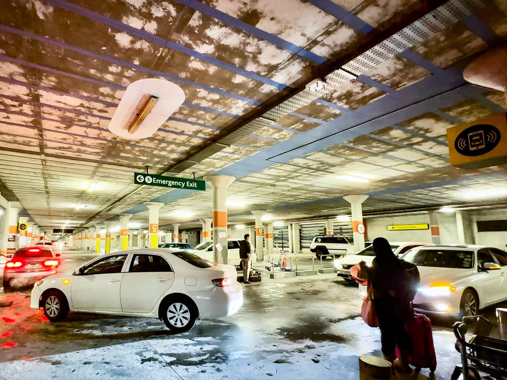 Uberの乗り場は、ターミナルの右手にある駐車場の1階にあります。写真で”E-hailing Pick Up Area“がそうです。左手奥に見えているビルの中です。