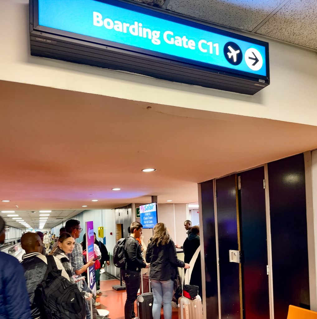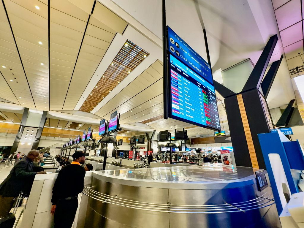 私はSouth African Airwaysを利用しましたが、チェックインには再度国内線のターミナルBに戻るように言われてしまいました。運よく無人のチェックイン端末がみつかりそこでチェックイン出来ましたが、ご注意ください。