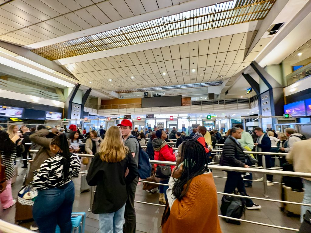 VFAの入国審査は、すべて手作業なので長蛇の列です。列に並んでから1時間15分かかりました。窓口に2人の人がいるので、同時に2人の処理ができると思っていたら、1人は入国審査官、もう一人は出納係でした?