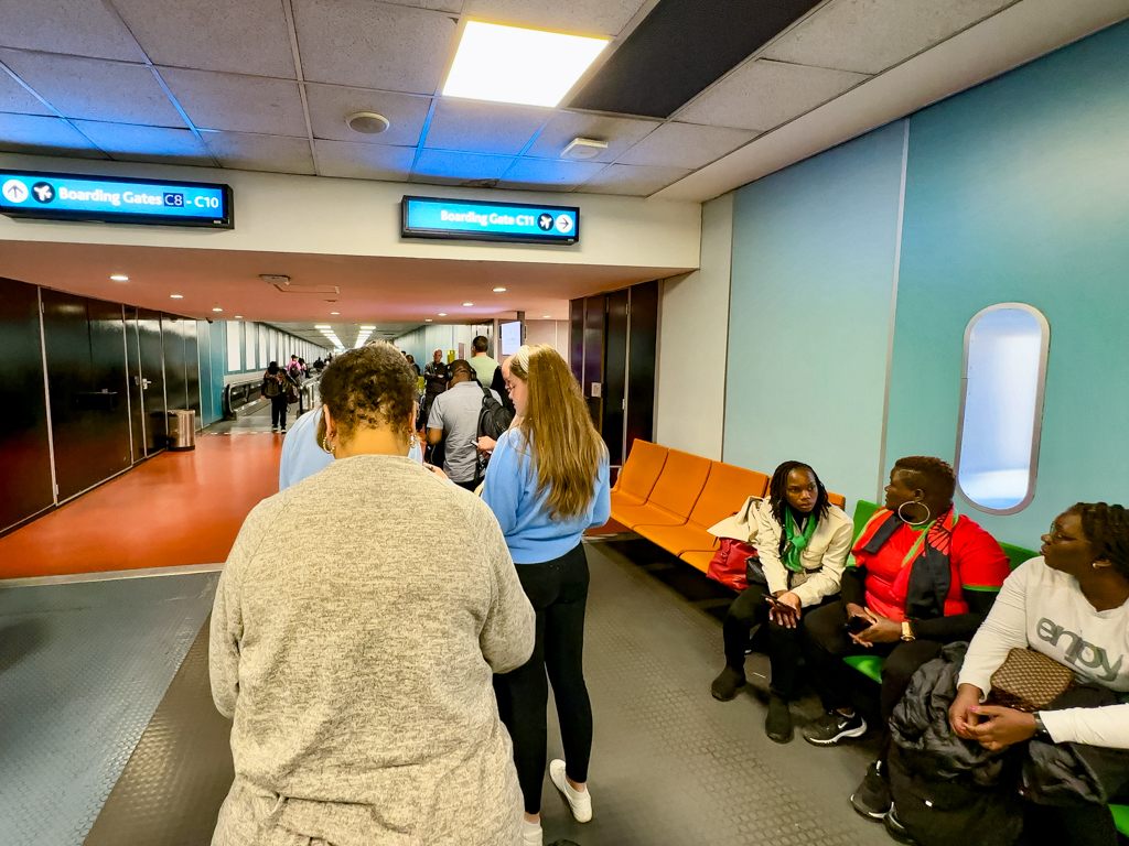 通路に空港職員風の格好で立っていて、質問すると親切に対応してくれるのですが、チップを求めてくる人に出会いました。無視しましょう。
