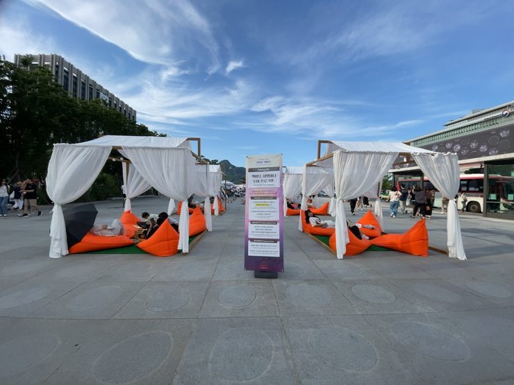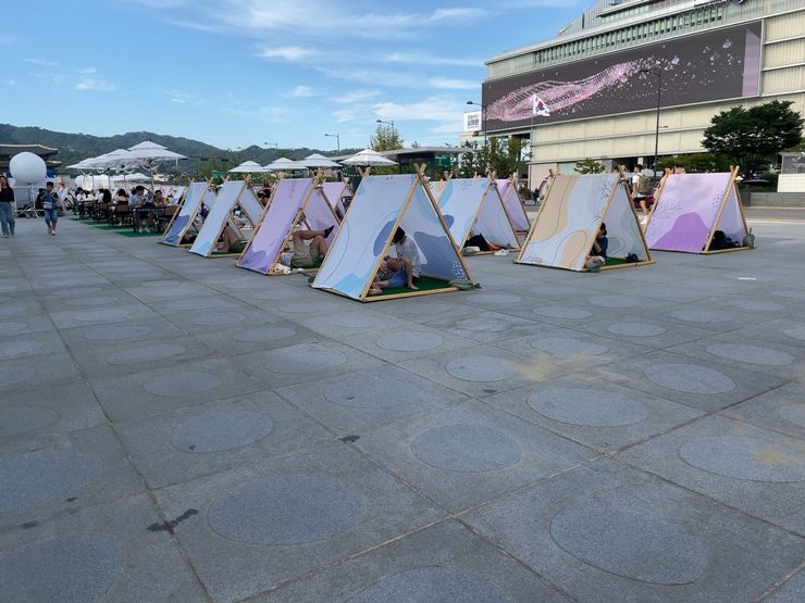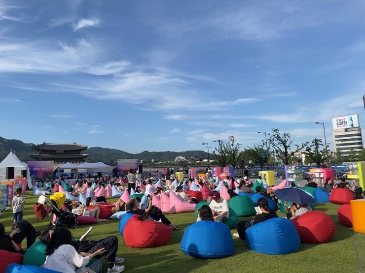 ソウル野外図書館とは4月~11月まで光化門広場で行われているイベントです。土日は野外で本が読めるとあり、ソウル市民に人気です。まず、光化門ラウンジで本を借りた後、外で利用することができます。