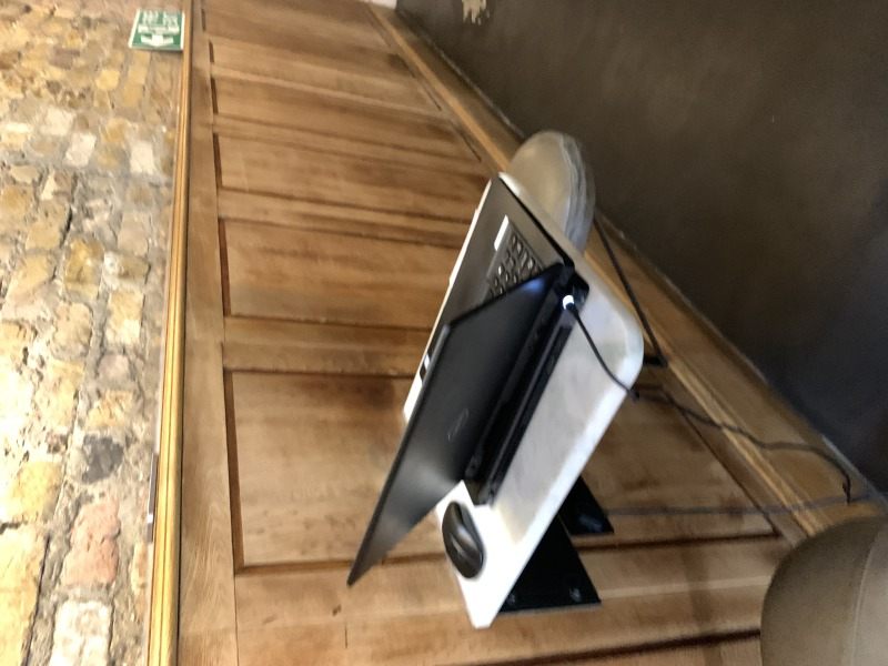 椅子に座ってPC作業をしてる人がホテルの人です。