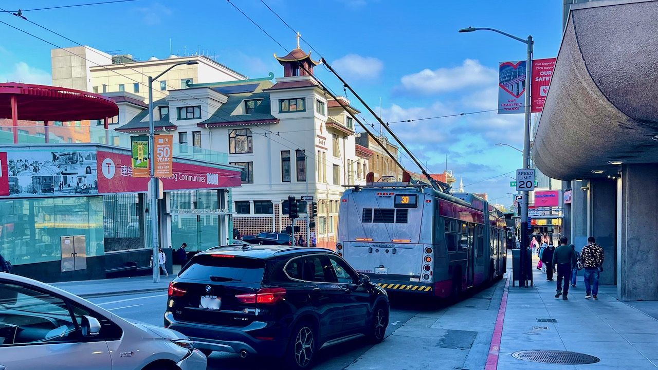 今年の1月にミュニメトロTラインがチャイナタウンまで開通したおかげで、チャイナタウン駅周辺はミュニバス#30・45・8・1を含め、東西南北の市内長距離路線が集約されました。