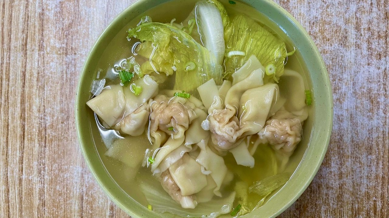 待つこと10分くらい。可愛い丼に雲呑とレタスとグリーンオニオンちょろっとが入っています。薄味に仕上がってるクリアスープにはお好みでお醤油(中国風醤油)かチリソースで味変。もしかして白胡椒をふってもいいかもしれません。そして、スープの温度は嬉しいくらい熱々。