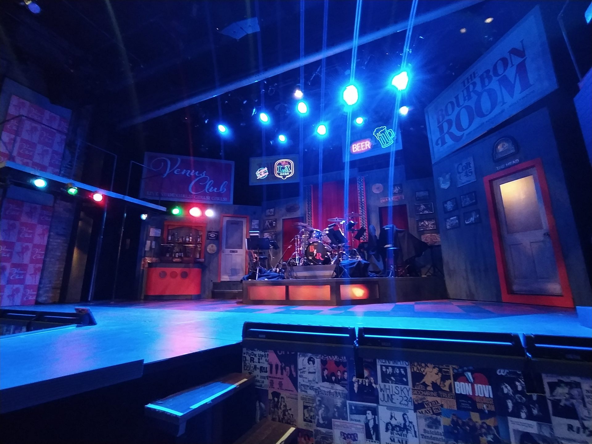 1階、2階とステージに向かって客席が緩やかな傾斜と共に広がり、入り口にはソフトドリンクや、アルコールなどが購入できるバーもあり、飲みながらほろ酔い加減で観覧するのがアメリカンスタイルです。