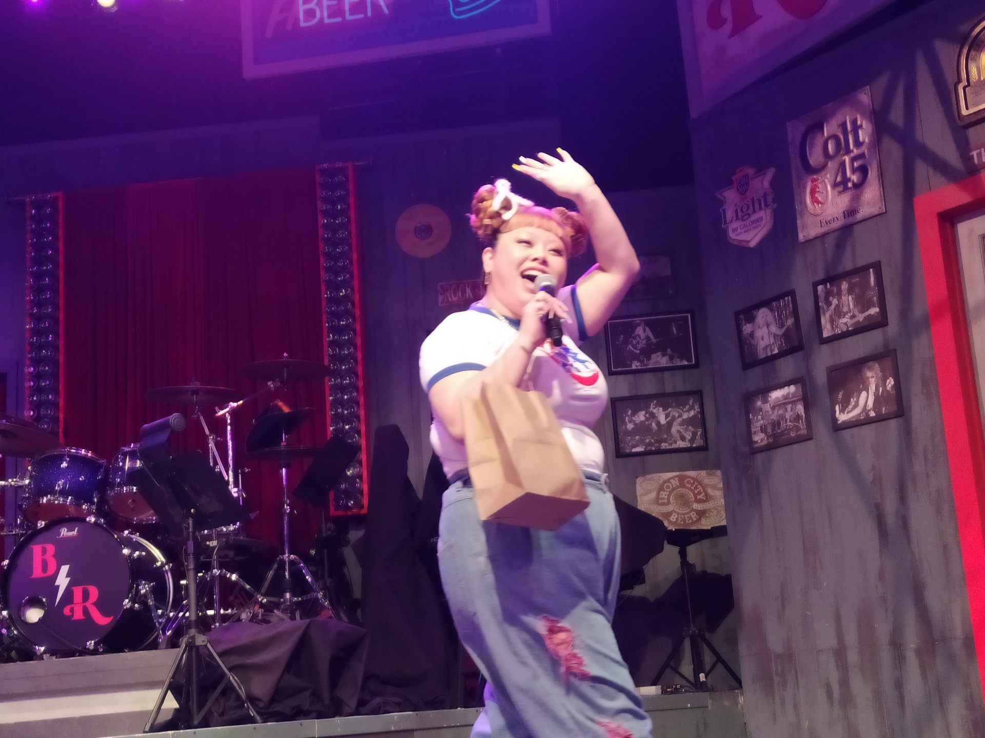 一人漫談からの客席と一体となったトーク、客席から何人か選び、その人と一対一でのゲームから沢山の笑いを巻き起こし終始大笑いした楽しい時間の1時間が瞬く間に終わろうとしていました。シカゴでのハプニングは、ポッドキャストのNaomi Takes Americaのシーズン1のエピソード6に登場した方や、渡辺直美さんと同じミュージカル「ヘアスプレー」の主役トレイシーをシカゴで演じた女優さんが見に来ているサプライズなどが!その舞台女優さんとなんと即興コントをステージ上で繰り広げると言うおまけつき。流石の二人です、打合せも無く演じた即興はファーストフード店でのちょっとした事を段々大きな笑いの渦にもっていくと言う内容でその演技はまさにミュージカルの一コマの様でした。