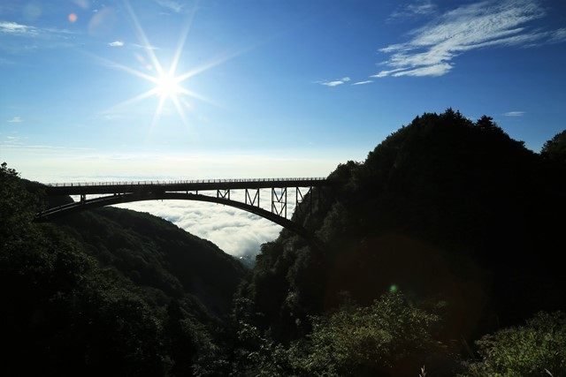 福島市にある一切経山へ行って来ました。4年ぶりにカモシカ沢を起点に駱駝山経由にて山頂を目指します。先ずは、つばくろ谷駐車場から不動沢橋の先に雲海を望みます。