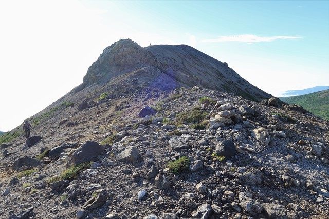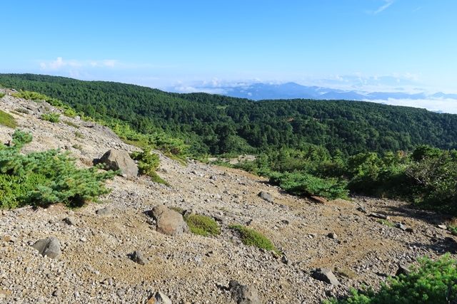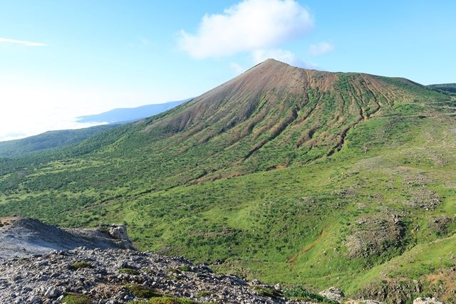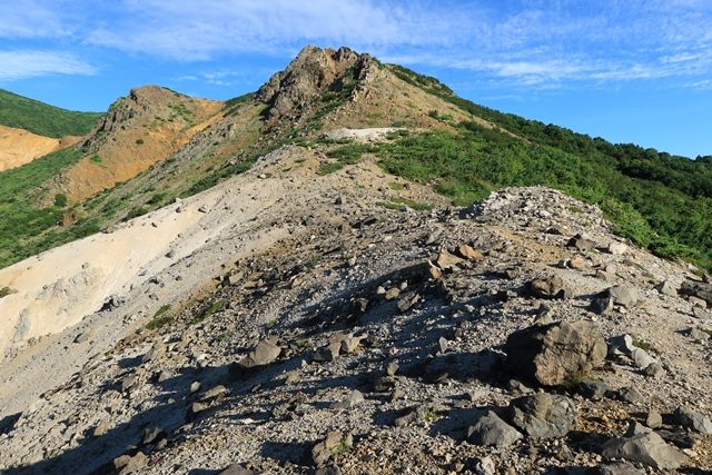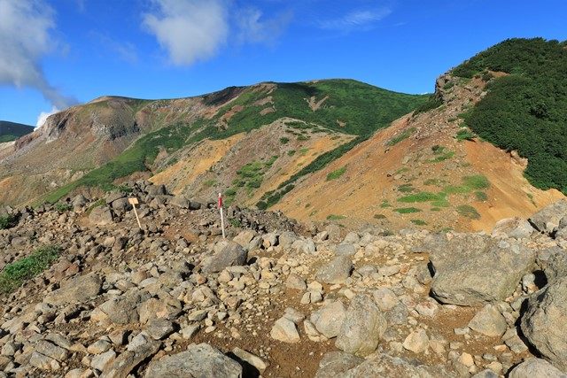 再びシモフリ新道の稜線へと出ました。ここから先、吾妻小富士と涅槃坂周辺の荒涼とした情景が楽しめます。