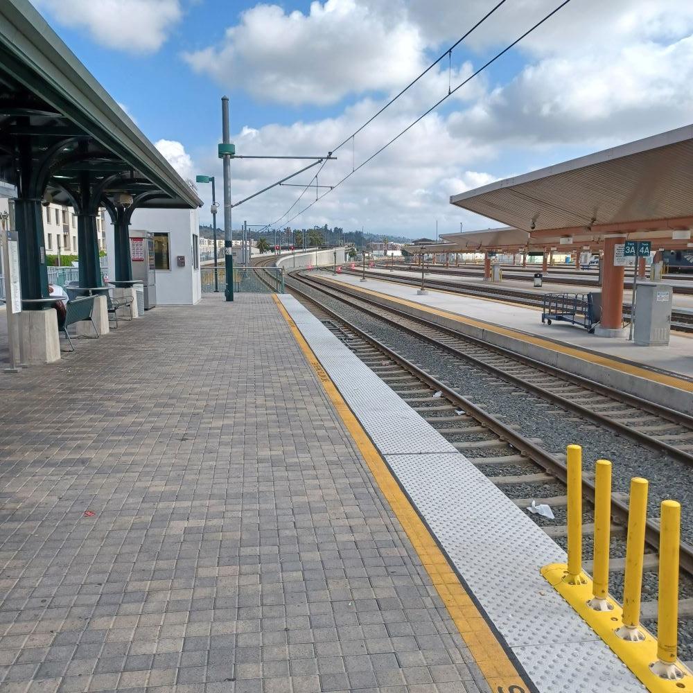 遅延情報がはっきりわからないときは、駅員や同じ列車を待っている様子の人たちに積極的に聞いて回ります。電光掲示板は発車予定時刻を過ぎると遅延があるにも関わらずサウスウェスト・チーフ号の表示が消えてしまいました。そしてしばらく待つと今度は突然館内放送でサウスウェスト・チーフ号の乗車案内が始まりました。電光掲示からは消えているので、ホームの番号も放送が頼りです。係員が急に現れて乗客の一団はそのあとについてプラットホームへ向かう感じでした。もし待合エリアから遠く離れた場所にいたらわからなかったことなので、チケットカウンターや待合エリアでじっとしていたのは正解でした。午後5時55分発車予定だったサウスウェスト・チーフ号は1時間12分遅れの午後7時7分にロサンゼルス・ユニオン駅を出発しました。