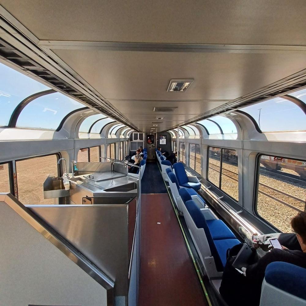 ダイニングカー(食堂車)は基本的に寝台車乗客が利用(寝台料金に食事が含まれているため)しますが、サウスウェスト・チーフ号では普通車乗客も有料で利用できると車内アナウンスがありました【朝食20ドル、昼食25ドル、夕食45ドルのセットメニュー】