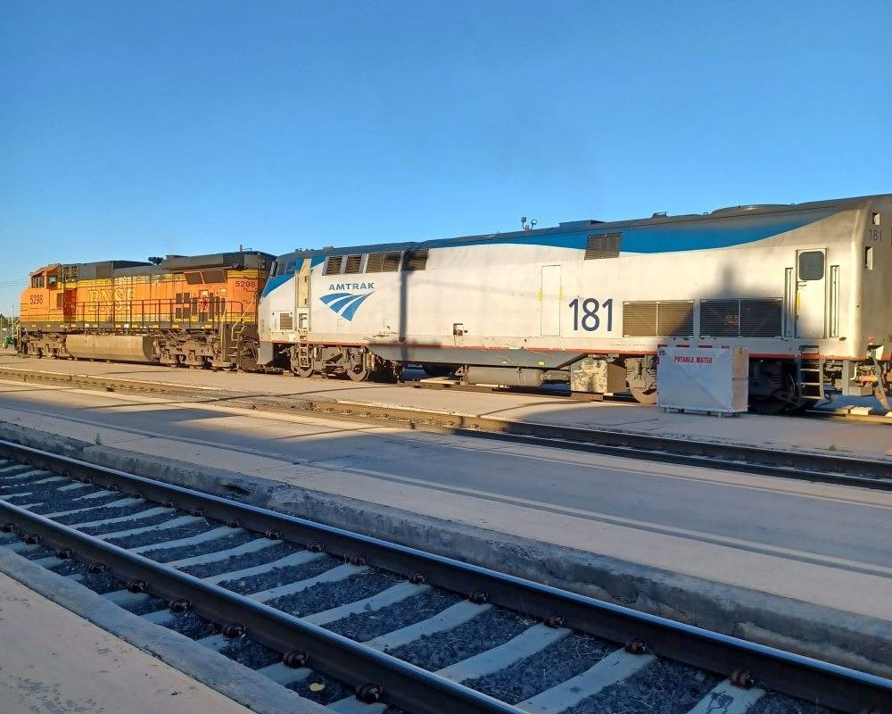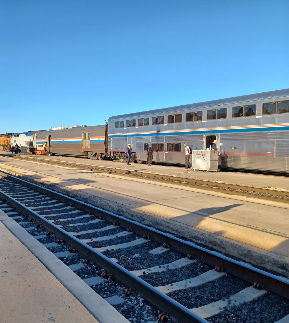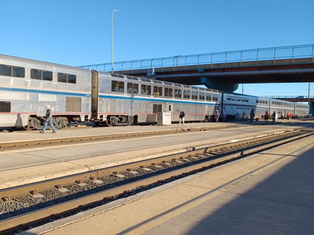 LAからシカゴまで3日間走り通すサウスウェスト・チーフ号。連結している車両編成は途中駅での停車中に確認することができました。
