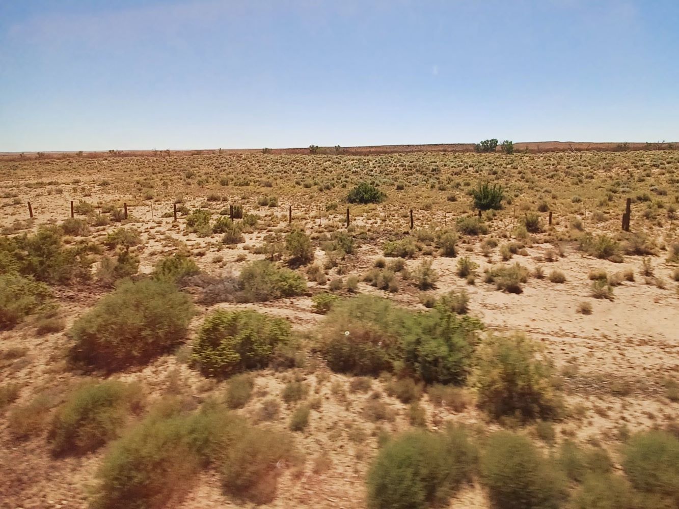 カリフォルニア州を深夜のうちに通り抜けて二日目の夜明け前にアリゾナ州に入ったあたりで、眠りから覚めると列車のエンジン音が止まっていることに気づきました。車内アナウンスでは「技術的な問題」が発生したと説明がありましたが、具体的にどこがどのように問題なのかは聞き取れません。そのうちに日も高くなり、エンジン音も空調も一時的にストップして2時間ほど経過したところで、けん引しているディーゼル機関車を交換するとのアナウンスがありました。代替えの機関車の到着を待っていたために時間がかかったようです。そういえば乗っている客車の階下にあるトイレも五か所全部使用禁止になっていました。隣の客車のトイレが使えたのは幸いでした。