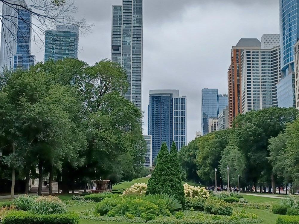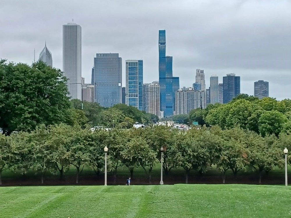 シカゴといえば、冬は「ウィンディ・シティ(風の街)」と呼ばれ、寒さの厳しいところですが、訪れた日はまだ9月上旬の過ごしやすい陽気で、公園の緑も美しく、散策に最適の一日でした。