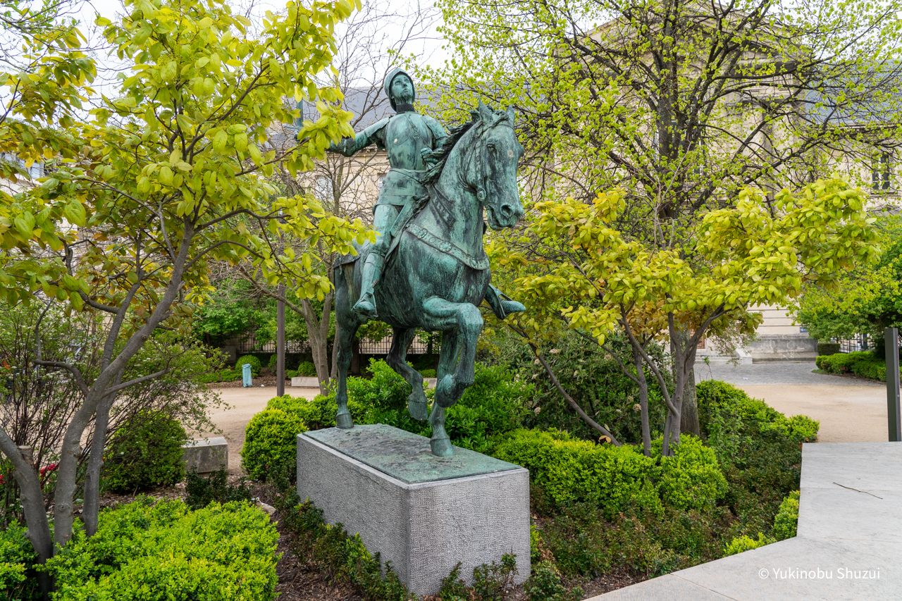大聖堂の傍らにはジャンヌ・ダルクの像も。ジャンヌ・ダルクは、フランスとイングランドの間に起きた百年戦争の際にオルレアン解放を成功させた人物です。同戦争においてシャルル7世をランスに赴かせて戴冠式を行わせた立役者でした。その後ジャンヌ・ダルクは、百年戦争の功労者だったにもかかわらず、捕えられてノルマンディーのルーアンで火刑に処されるのですが、ランスはいくつかあるそのジャンヌ・ダルクゆかりの場所です。