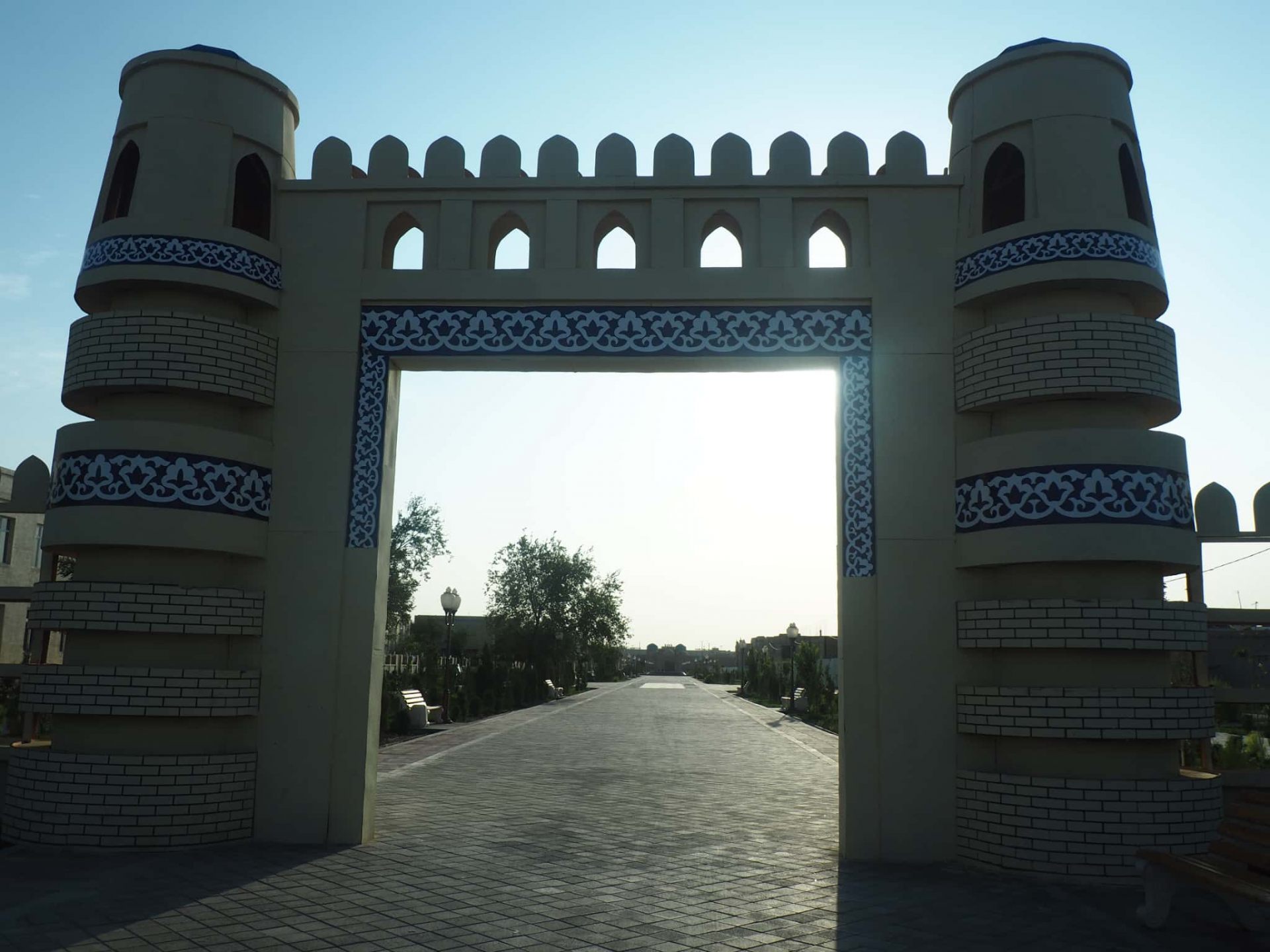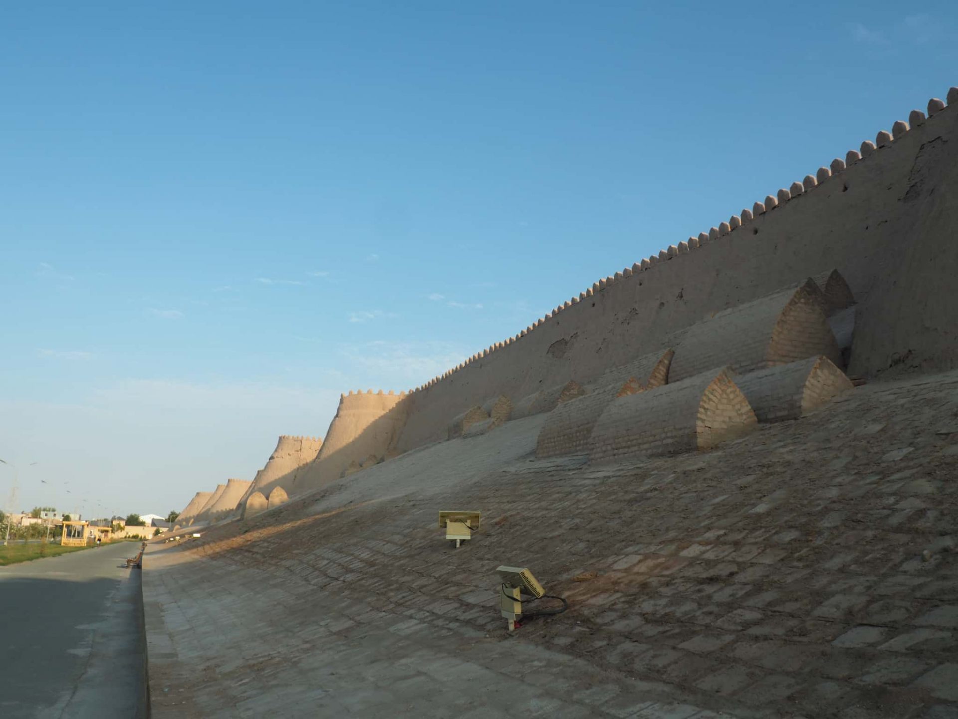 ヒヴァ駅に着いたら駅前に延びる道をひたすら歩くのみ。徒歩15分ほどでイチャン・カラの東側の入口、パルヴァン・ダルヴァザ(東門)に到着です。