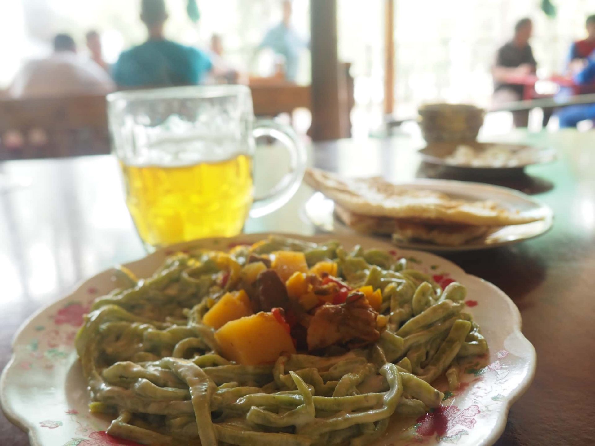 朝から観光していると、このあたりでちょうどお昼になるはず。イチャン・カラ内にもレストランは多いのですがやはり国内屈指の観光地だけあって値段はお高め。地元の人々に人気なのが、オタ・ダルヴァザから徒歩10分、ヌルラボイ宮殿近くの幹線道路沿いに並ぶチャイハナ(ローカル食堂)街。どのお店もプロフにシャシリクにと外国人に人気のウズベク料理を揃えていますが、最低一品は何かヒヴァらしい料理を注文してみるのはいかがでしょう。ここホラズム地方はウズベキスタンの中でも独特の文化を持つ地域といわれており、食文化もまた然り。以前タシケントのホラズム料理レストラン特集記事(82. ヒヴァに行かなくても食べられる!摩訶不思議な地方料理ホラズム料理をタシケントで味わおう)でご紹介した通り、他の町では全くお目にかかれない料理が揃っているのです。