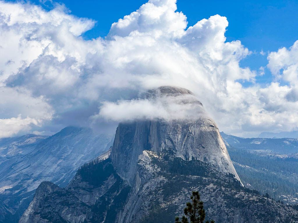 今年の雨季の訪れは早く、9月初旬にもかかわらず夕立に会ってしまいました。ハーフドームも雲に隠れています。今年の冬も降水量は多いのかもしれません。