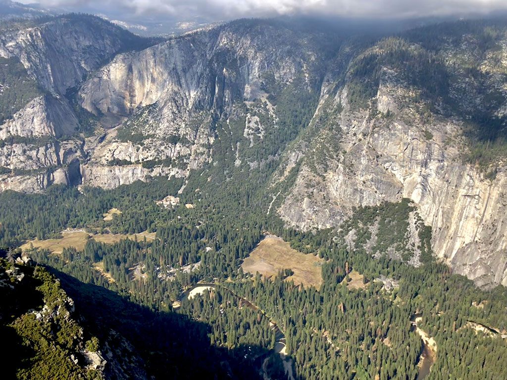 Glacir Pointからの1000mの眼下に広がるヨセミテ渓谷の景色です。