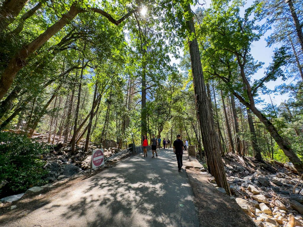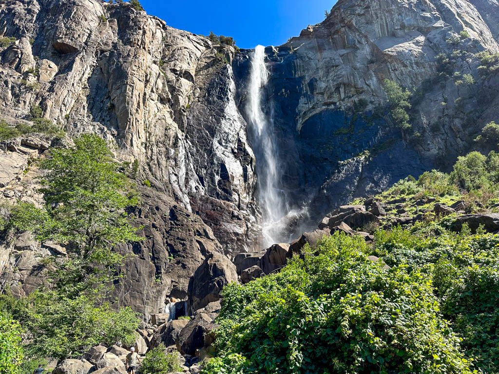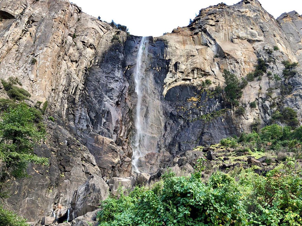ブライダルベール滝の訪問駐車場は、引き続き工事中で入れませんが、El Capitanを望む周回道路に駐車して訪問が可能です。往復で30分ほどです。ビューポイントの先の岩場は危険なので入らないようにしましょう。