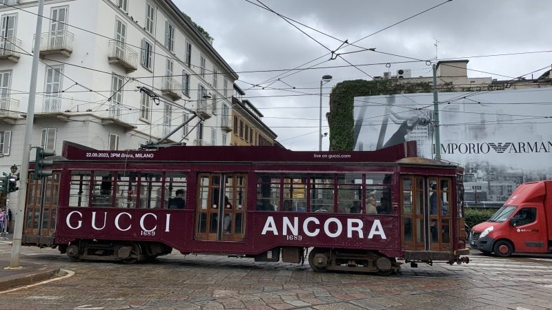トラムもGUCCIの広告にラッピングされ、街のあちこちにロゴが表示されていました。