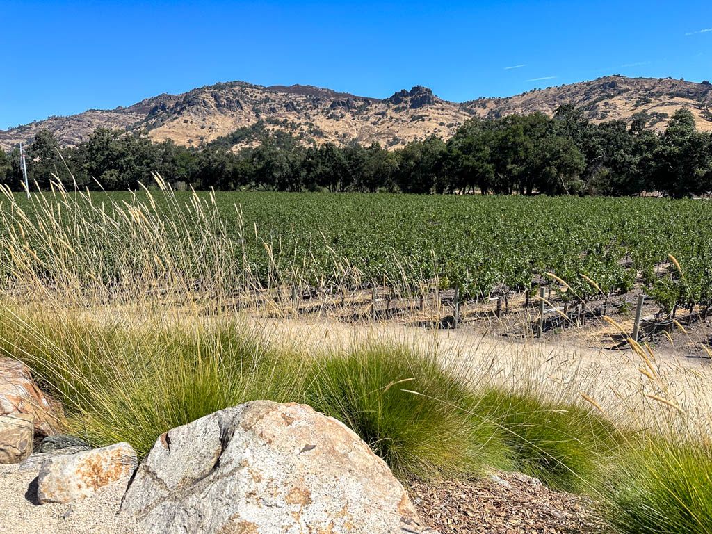 Opus Oneのワイナリーの周りのCabernet Souvignonのvineyardです。8月28日。もう間もなく収穫が始まりそうな感じです。