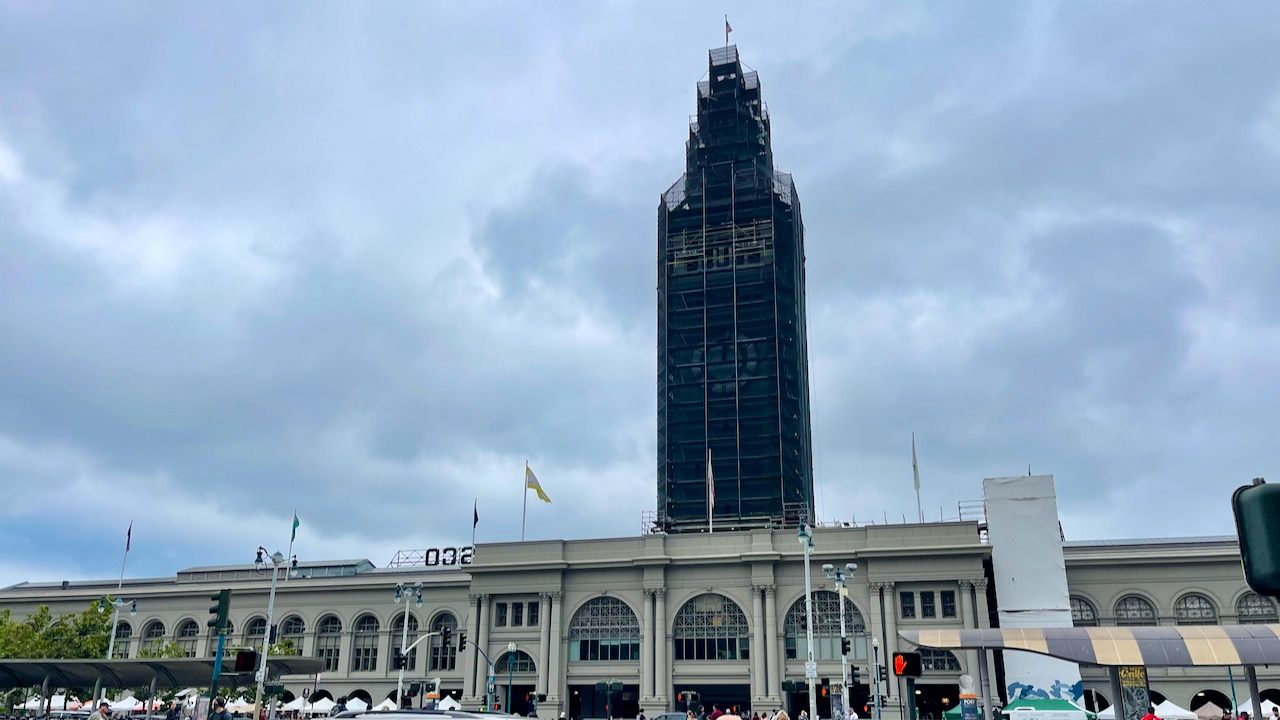 2019年から段階的に補強工事が行われています。地元新聞の名物コラムニストが”有名都市の最も有名なランドマーク(A famous city's most famous landmark)”(すごく昔の話)と言ったフェリービルディング。暖かみのあるカスタムブレンド色の外壁は”フェリービルディング・グレー(Ferry Building Gray)”と呼ばれています。年の初めに時計台にネットがかけられましたが、年末に取り払いになる予定です。
