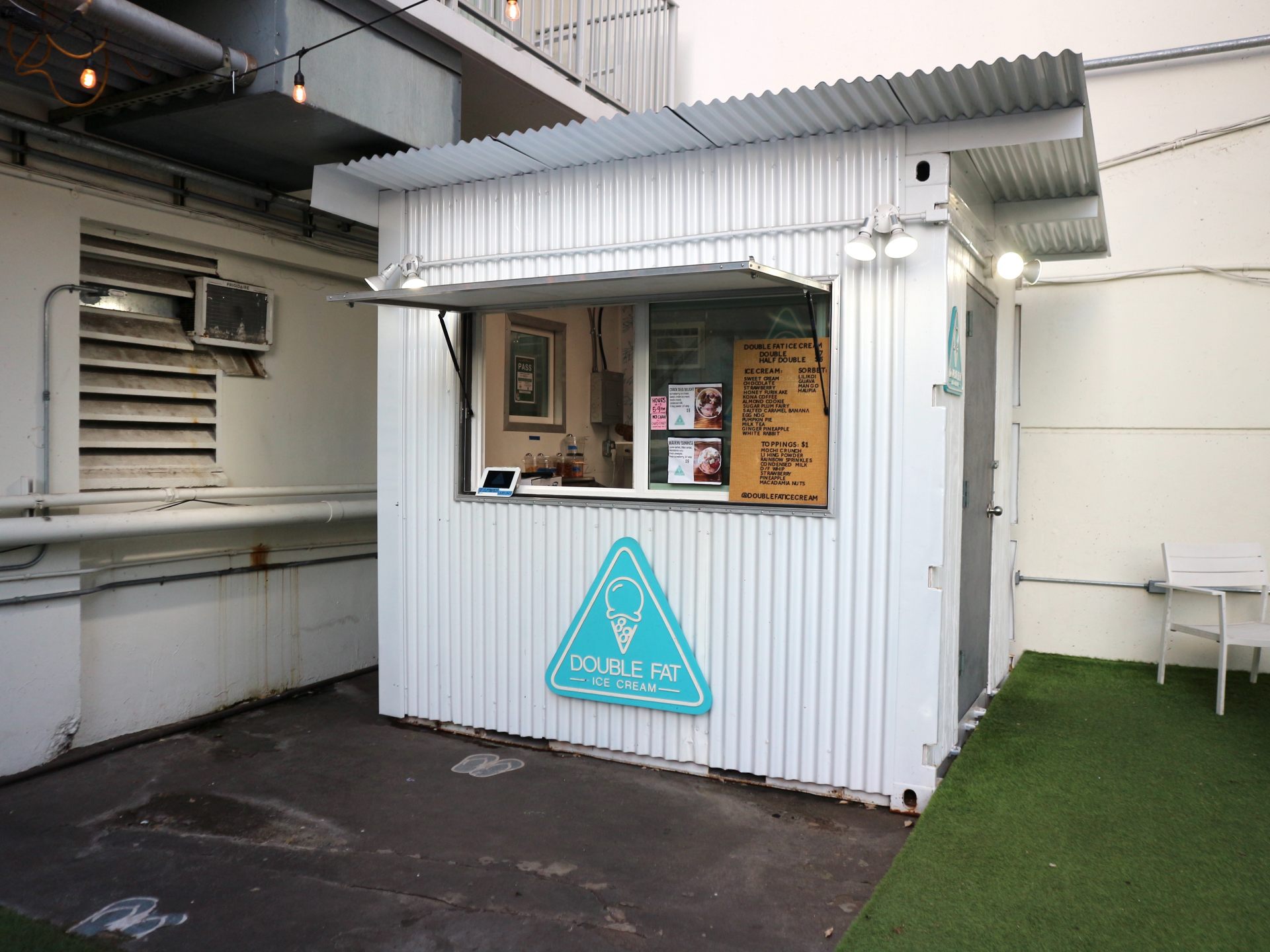 坂を上ると、右手奥に小さくて可愛らしいダブル・ファット・アイスクリームの店があります。
