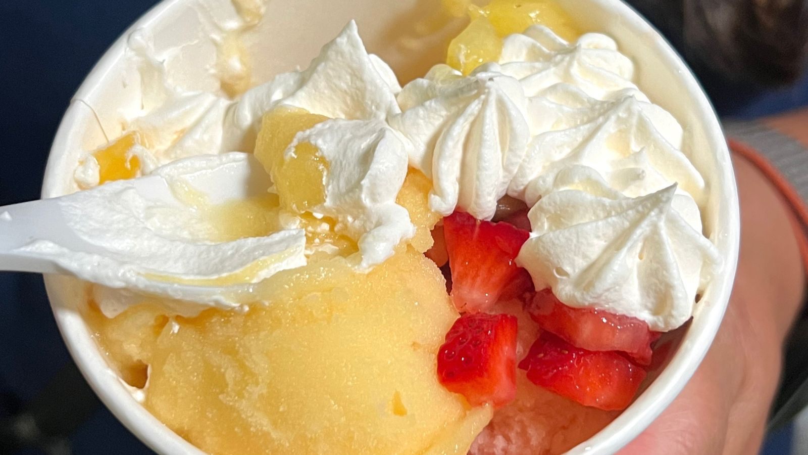 トッピングには、ハワイの人が大好きなリヒンパウダーやかき餅の他にも新鮮なパイナップルやイチゴ、マカダミアナッツがあります。