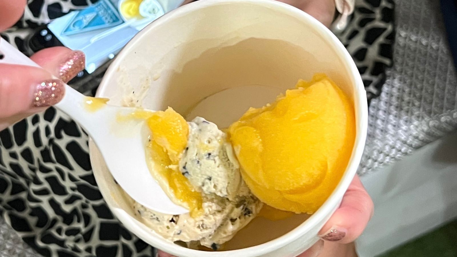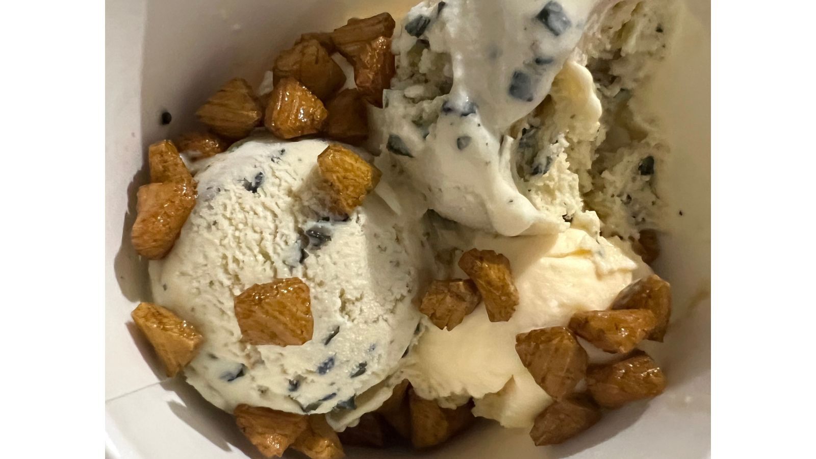 店では、スイートクリーム、チョコレート、ストロベリーなどの定番アイスクリームから、ハワイらしい食材を使ったコナコーヒーやジンジャーパイナップル、そしてハワイの多様な食文化を代表するハニー・フリカケやアーモンドクッキーなど、10種類程度のアイスクリームと4種類ほどのシャーベットを楽しめます。季節によってメニューは変わります。