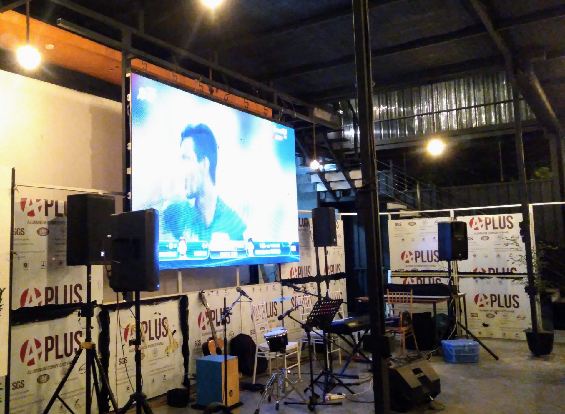 夜のバータイムは、スポーツやミュージックなど大型スクリーンでLive中継しているようです。