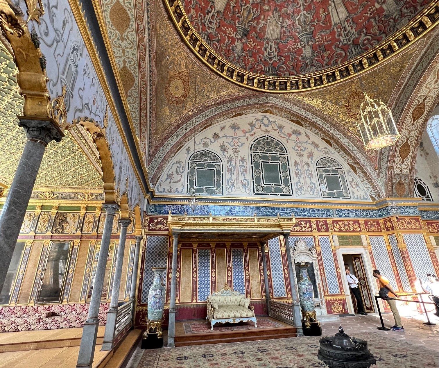ご存じオスマン帝国の栄華を集約したTopkapi Palace(トプカプ宮殿)。コンスタンティノープルの陥落後、征服王スルタン・メフメト2世の命令によって1459年に建設が始まり、オスマン帝国が滅亡する1923年まで帝国の中枢であり続けました。(スルタンが居住していたのは1856年まで)宝物館には宝石をあしらった数々の装飾品や美術工芸品や海が見える見晴らしの良いテラスがあり、圧巻です。また、宗教聖遺物の建物にはモーセの足型や洗礼者ヨハネの頭蓋骨、預言者ムハンマドのひげなど、かなり驚きの品々があり印象的でした。個人的には追加チケットが必要になる後宮(ハレム)が比較的人が少ない上に装飾などが繊細で美しく、見ごたえがありました。