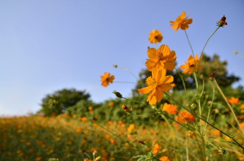 オリンピック公園のドゥルコッマルへは地下鉄5、9号線 オリンピック公園駅 3番出口から徒歩10分ほどのところにあります。一面、黄花コスモスが美しく咲いていました。秋空と合い、とても映えます。