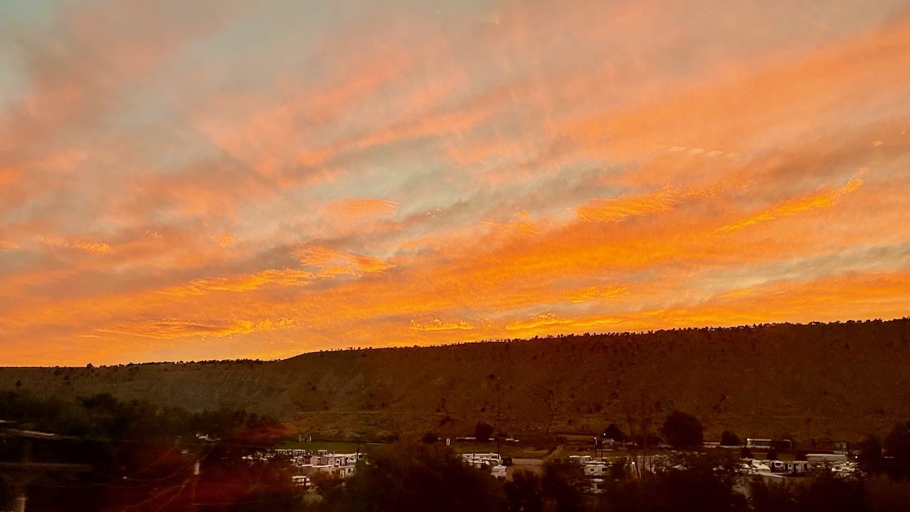 刻々と移り変わるオレンジ色の夕日が天井からも見え、今日の振り返りの時間でした。雄大なロッキーの山越えや岩肌が何とも形容しがたくただただアメリカ大陸を感じた1日でした。