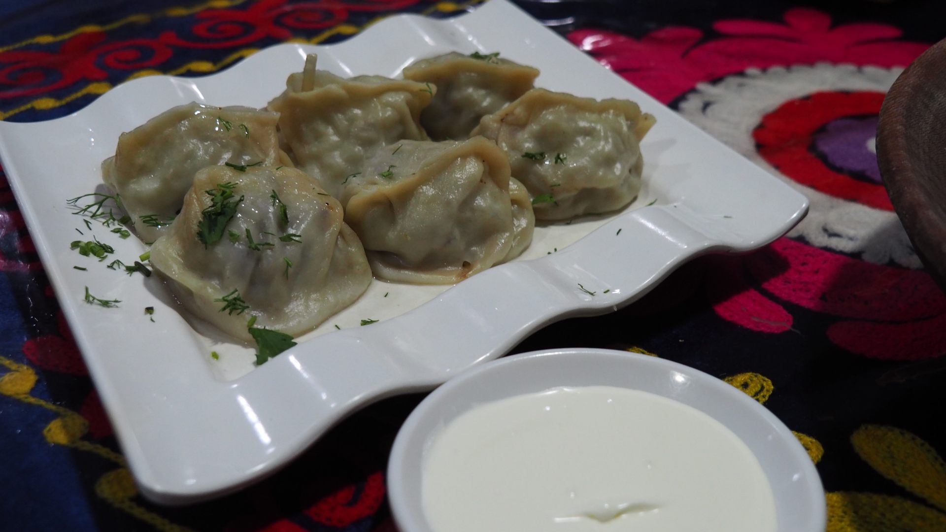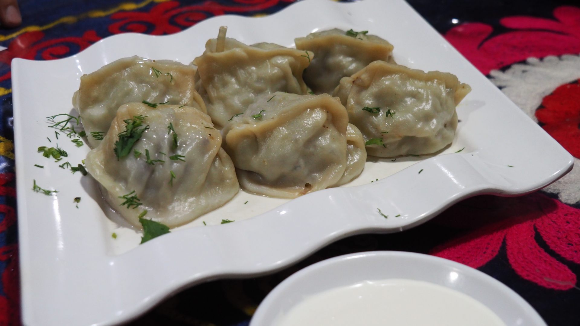 中央アジア広域で見られるマントゥです。カザフスタン等では「マンティ」と発音されることが多いようですが、タジキスタンでは専ら「マントゥ」と呼ばれています。小麦粉を練って伸ばした皮でひき肉のタネを包んで蒸した料理です。小籠包・饅頭の一種と言っても過言ではありません。