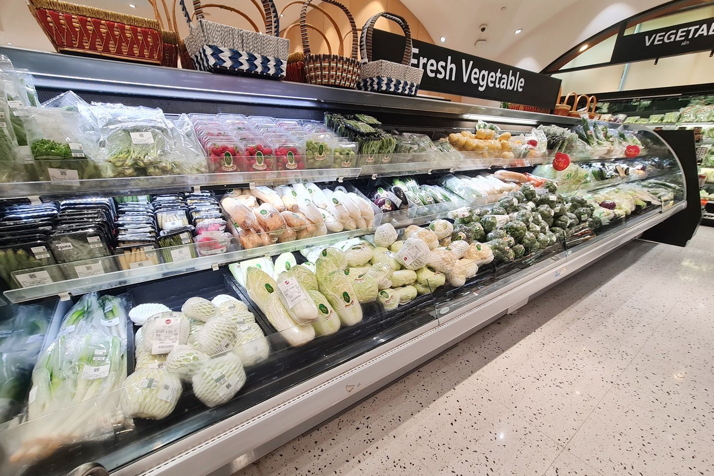 • 「THEWATERFALLQUARTIER」内のG階にあるスーパー「グルメマーケット」の野菜売り場の一部