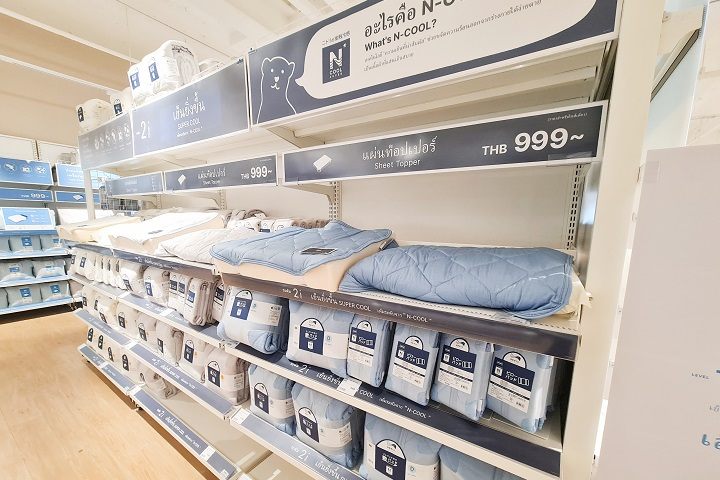 セントラルワールドの5階を歩いているとすぐにニトリの入口が見えてきました。開店当初のオープニングセール期間中は入場制限があったようですが、セール直後に行ったからか、混雑なく、入って、快適に見てまわることができました。ニトリの商品はオンラインでも購入できますが、こうして実物を見られる店舗がバンコク中心街にあるのはとても便利で、ありがたいです。