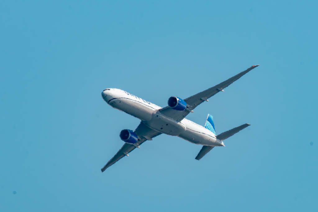 メインスポンサーのUnited航空のB777-300のデモ飛行です。あんな巨体が橋をかすめるように飛行してくれます。