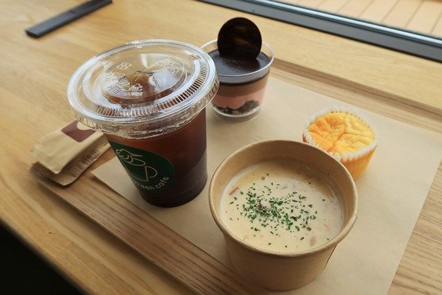 アイスコーヒー&ラズベリーとショコラのムース&米粉のチーズ&クラムチャウダー雰囲気も相まっていずれも美味しいです。
