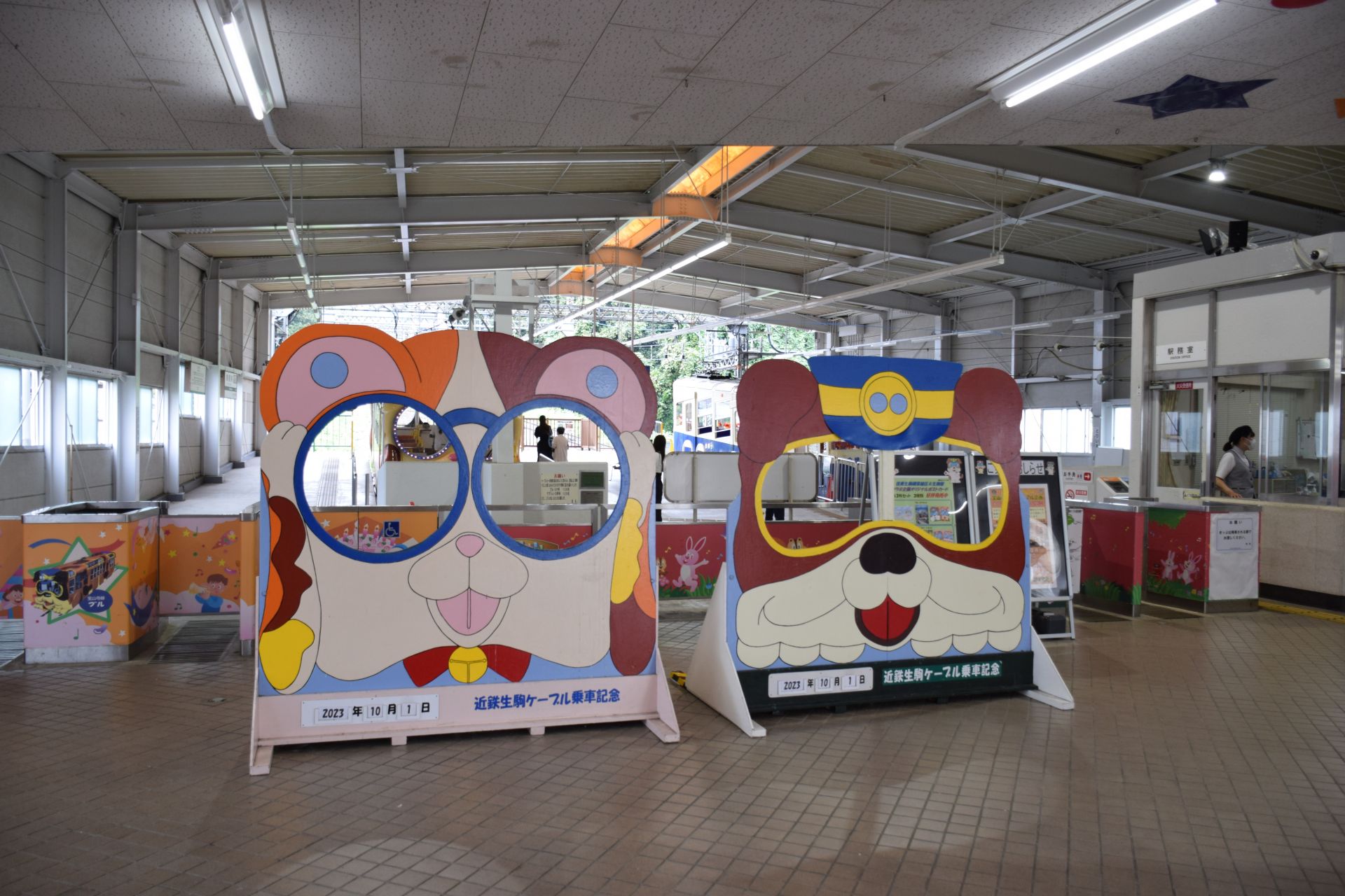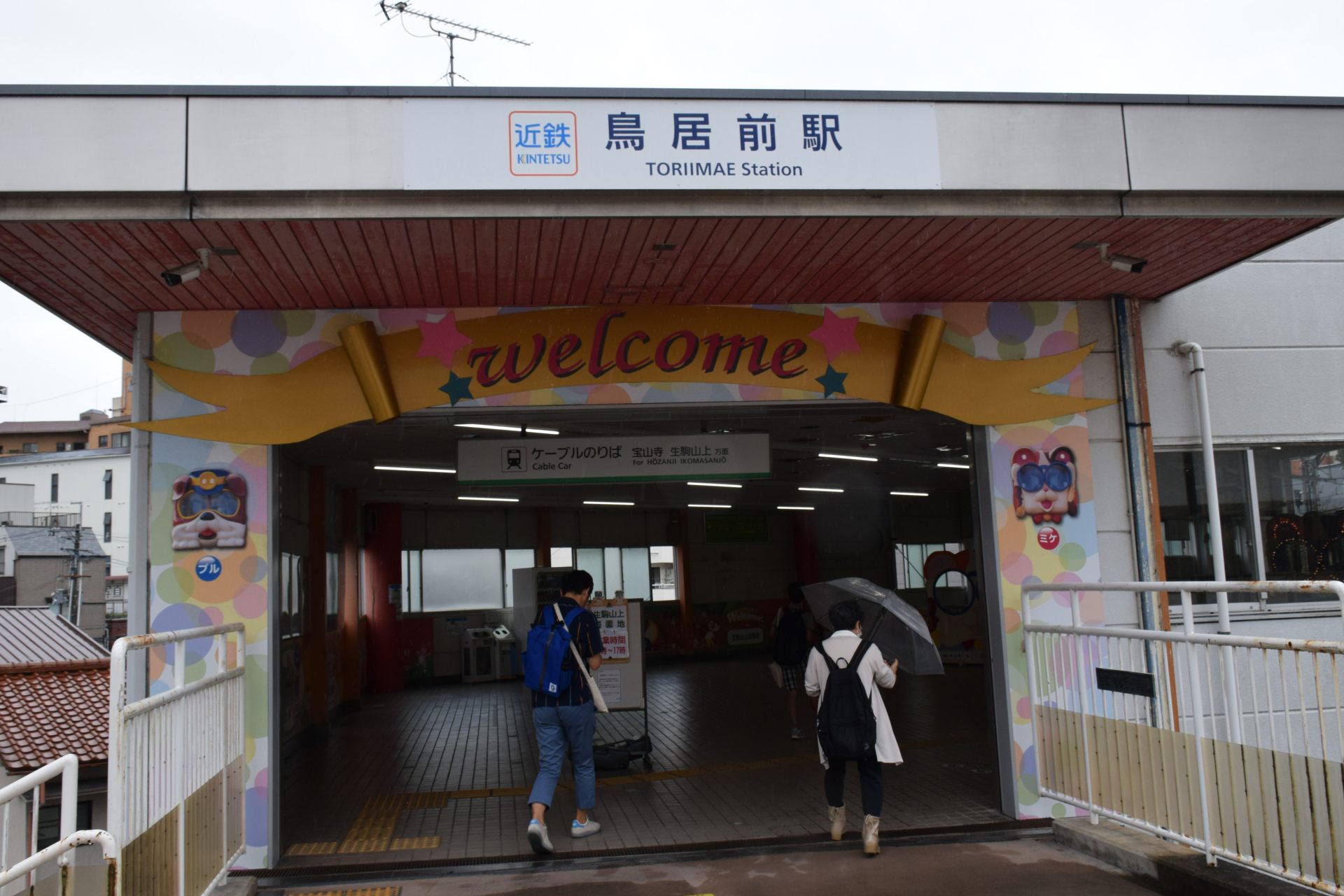 ケーブルカーの乗り場は、近鉄電車生駒ケーブルの鳥居前駅です。