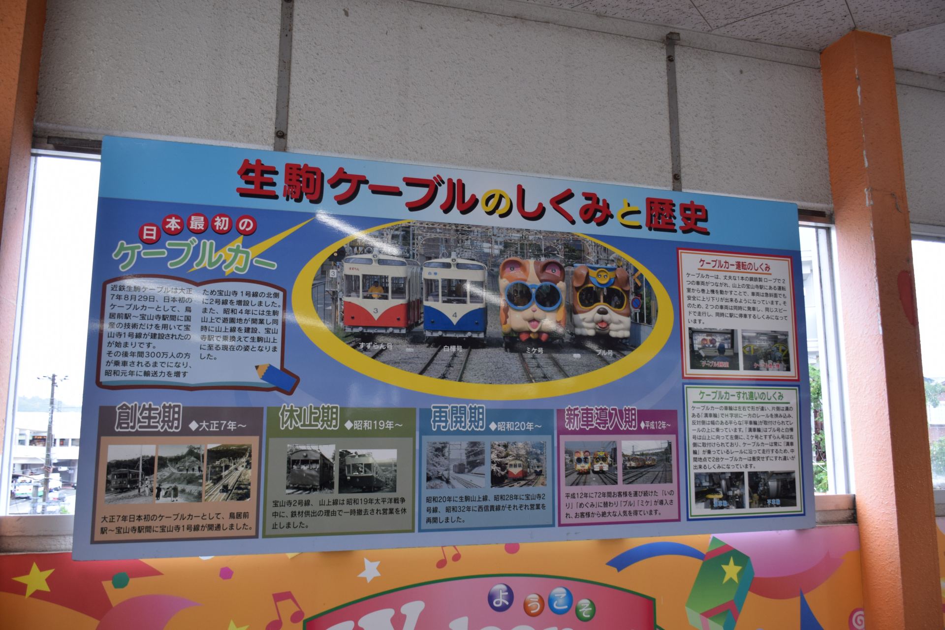鳥居前駅と宝山寺駅を結ぶ0.9kmと、宝山寺駅~生駒山上駅間の1.1kmからなっていますが、宝山寺駅~生駒山上駅間は生駒山上遊園地の開園に合わせて1929年(昭和4年)に開業しています。